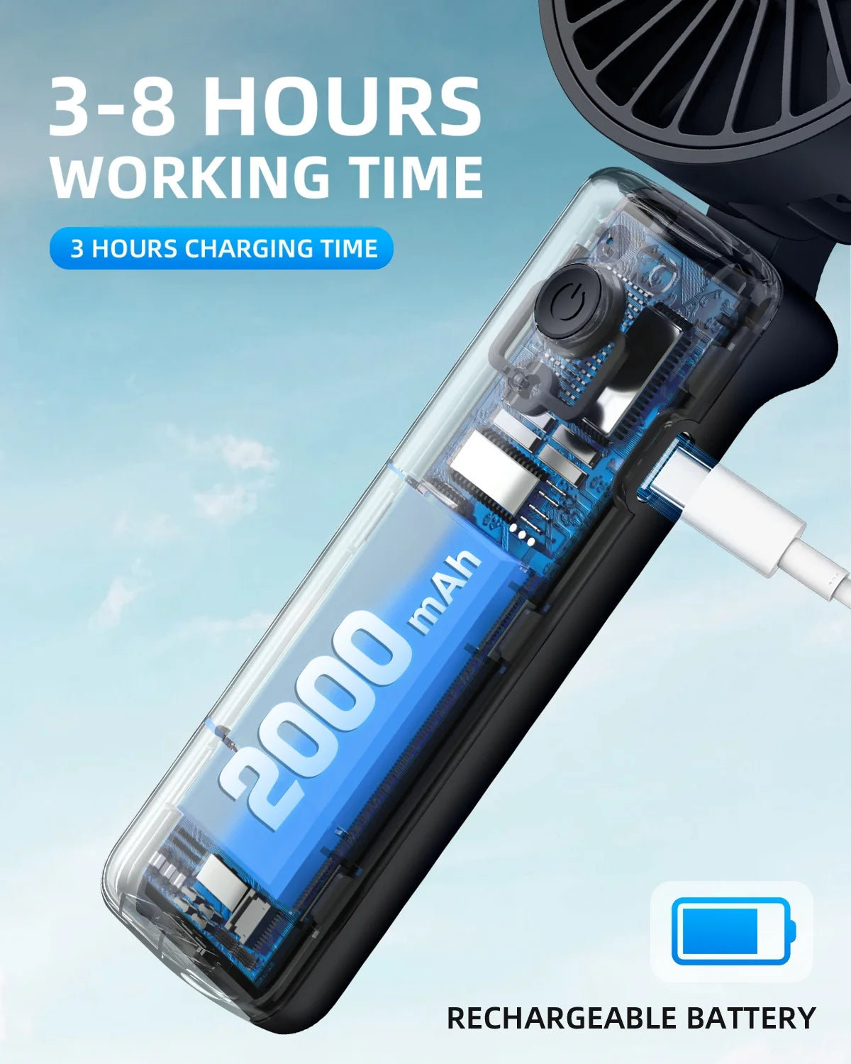 - 🍃【2000mAh LONG BATTERY LIFE & UP TO 8H COOLING TIME】The mini fan can be fully charged in only 2.5 hours, can work continuously for 3-8 hours. With the newly TYPE-C charging port for faster charging speed.