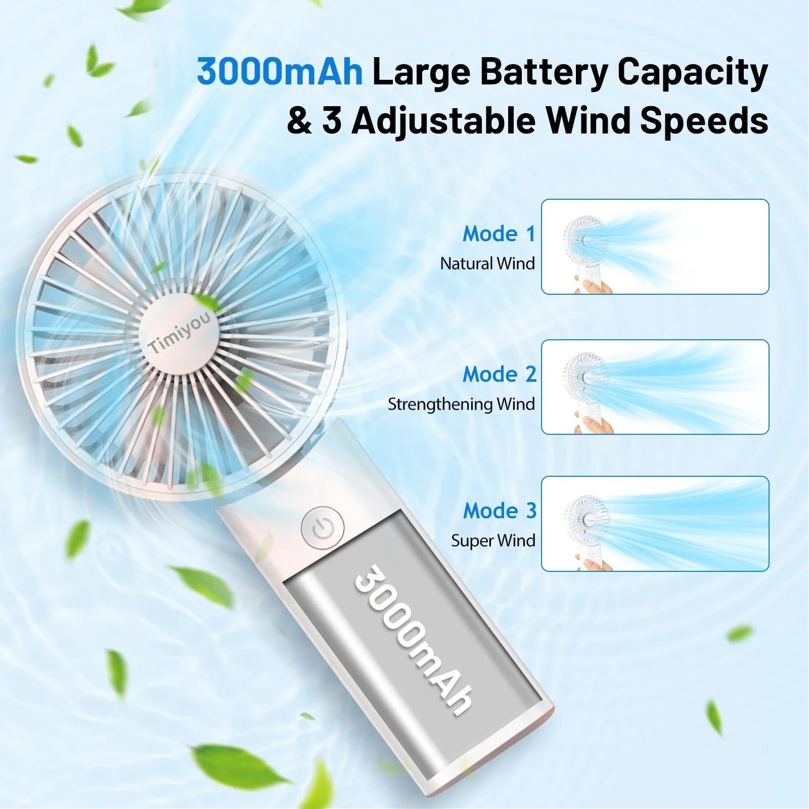 Handheld Fan, Foldable Pocket Fan with 3000 mAh Battery, Mini Desk Fan